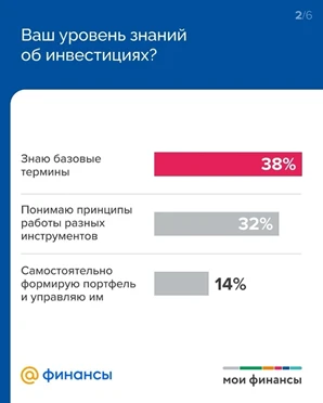 Финансы Mail и проект «Мои финансы» НИФИ Минфина России в преддверии VIII этапа Всероссийской просветительской эстафеты «Мои финансы» провели опрос. Он показал, что наши граждане заинтересованы в получении информации по инвестированию.