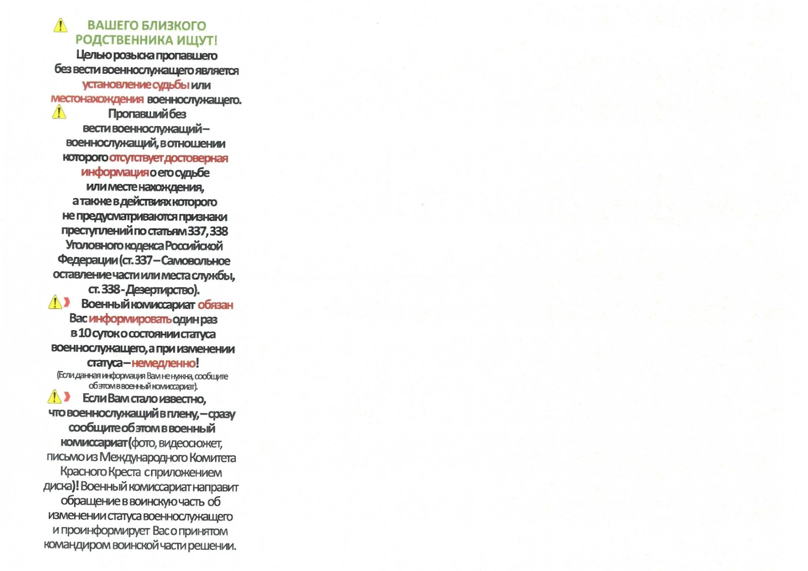 Просим вас: не оставаться в неведении; обратиться в военно-учётные органы или к уполномоченным специалистам по месту жительства; сдать биологический материал для генетической экспертизы.